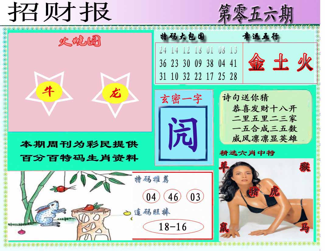 043期三行中特水火金开:鼠18