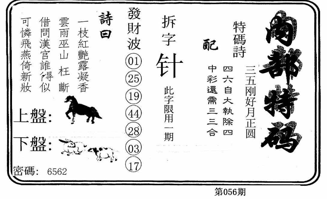 056期原创24码中特:?00